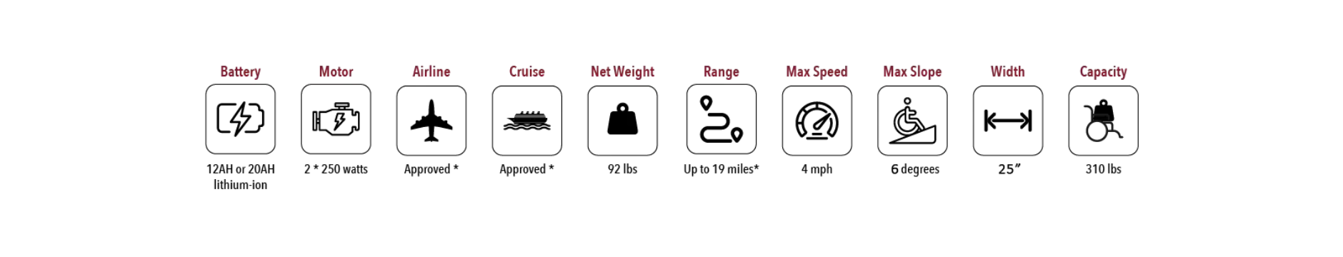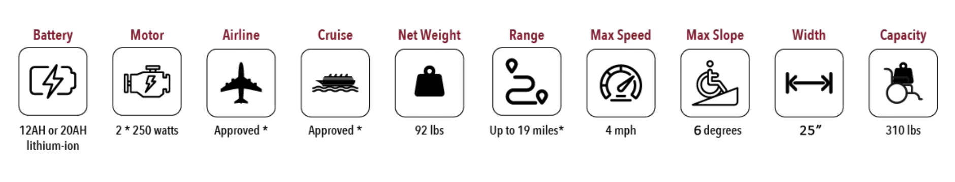 Discover the X-9 Remote Controlled Electric Wheelchair: Redefining mobility with its innovative design and unparalleled comfort.Featuring independent control of the backrest and right/left leg rests, this wheelchair provides a customized experience for every user. Easily loadable in car trunks and boasting up to 19 miles of range with a 20AH battery, the X-9 outperforms its class in convenience.Powered by dual 250-watt motors, the X-9 can confidently tackle inclines up to 6 degrees. Two quick-release 24V 12AH lithium-ion batteries, airline and cruise approved, provide an impressive range of up to 13 miles.Its lightweight yet durable frame, combined with a lithium-ion battery, make it airline and cruise approved.