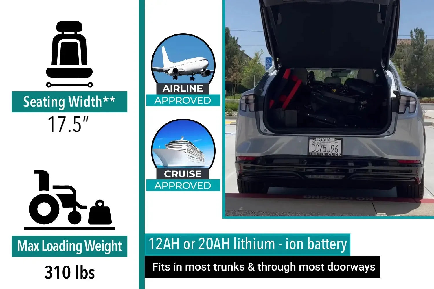 The standard 12AH lithium-ion battery is airline and cruise approved, offering up to 13 miles of driving distance. For longer journeys, choose the optional 20AH lithium-ion battery with an impressive range of up to 19 miles (note: the 20AH battery is not airline or cruise approved). Both batteries can be charged on-the-go or independently for added flexibility. Experience the freedom and convenience of the ComfyGO X-9 Electric Wheelchair.